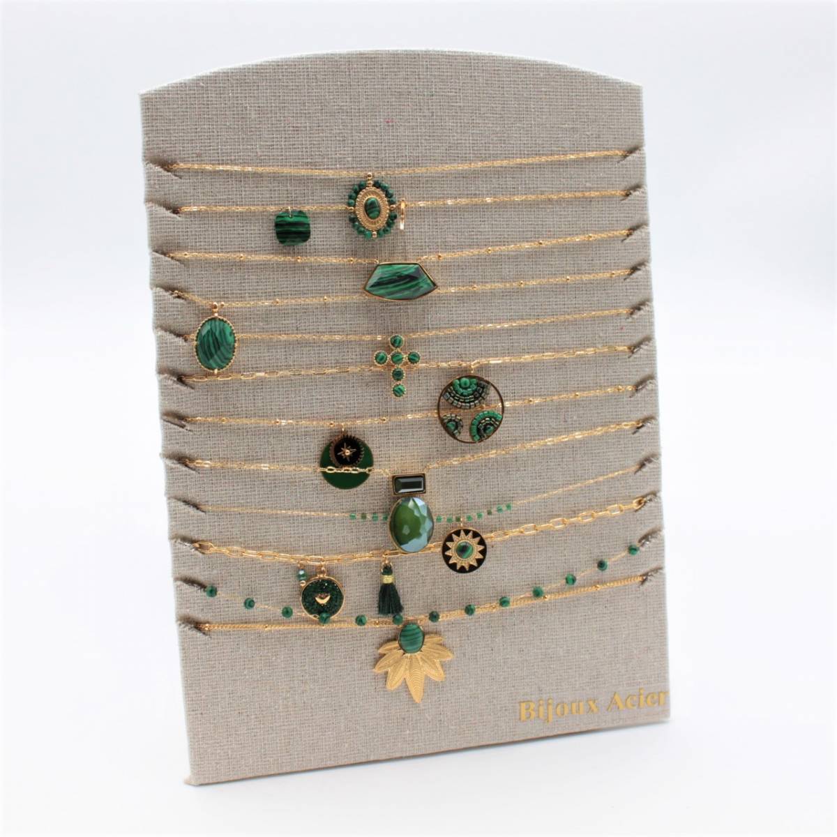 Votre grossiste Référence Mode vous propose des packs de bijoux en acier inoxydable assortis avec présentoir offert. Ces packs vous permettront une belle présentation en boutique pour offrir à vos clients une meilleure expérience d'achat dans votre magasin. Avec des couleurs automnales et tendances, vous pourrez proposer des bijoux 100% mode sur présentoir design.